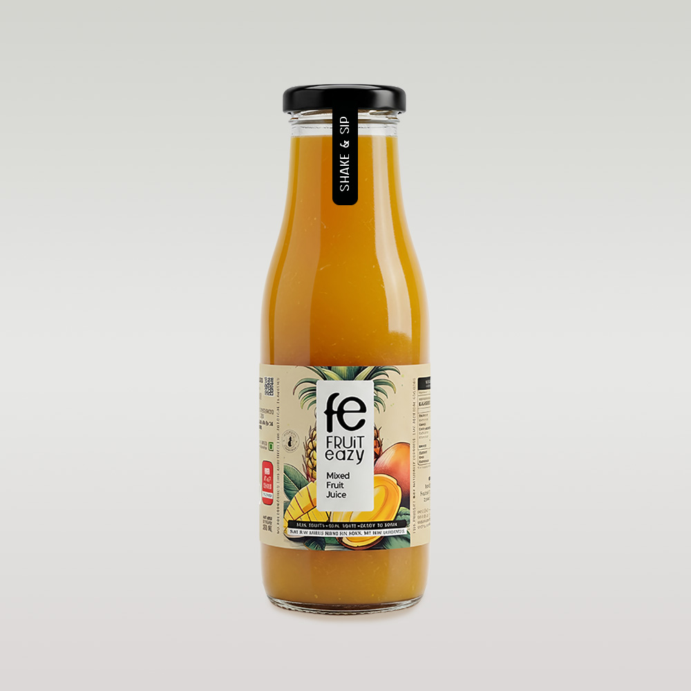 Fruit Eazy Mixed Fruit Juice brings together the sweetness of mango, the refreshing tang of pineapple, and the aromatic intensity of passion fruit. This expertly balanced blend offers a rich tropical profile with a smooth texture and bright finish. Processed to retain natural nutrients and flavor, it provides a ready-to-drink solution for households, cafés, and juice bars—eliminating the need for fruit preparation while ensuring premium consistency in every serving.